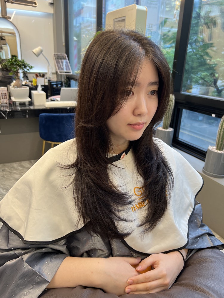 긴얼굴 장발 헤어스타일 중안부 보완으로 레이어드펌을 여러 번 추천받았음1 유행 많이 타나요2 펌
